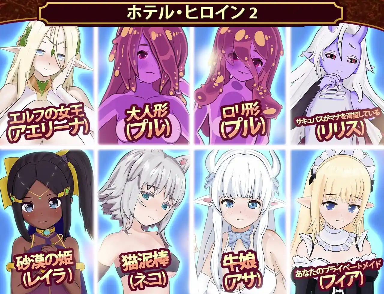挤牛奶、教导年轻的公主、与女骑士战斗、捉弄睡觉的女孩、培养史莱姆,还有其他许多有趣的事情!总共有 25 个场景。